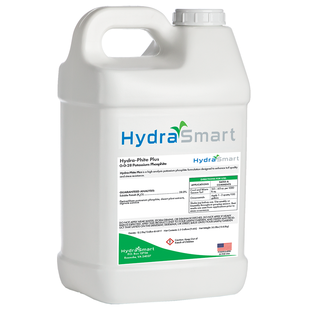 Hydra-Phite Plus is a concentrated potassium phosphite enhanced with biostimulants from desert plant extracts and SAR elicitors to strengthen turf, boost vigor, and trigger natural defense responses. Its synergistic formulation enhances turf quality and resilience, helping plants withstand stress and maintain peak performance throughout the season.