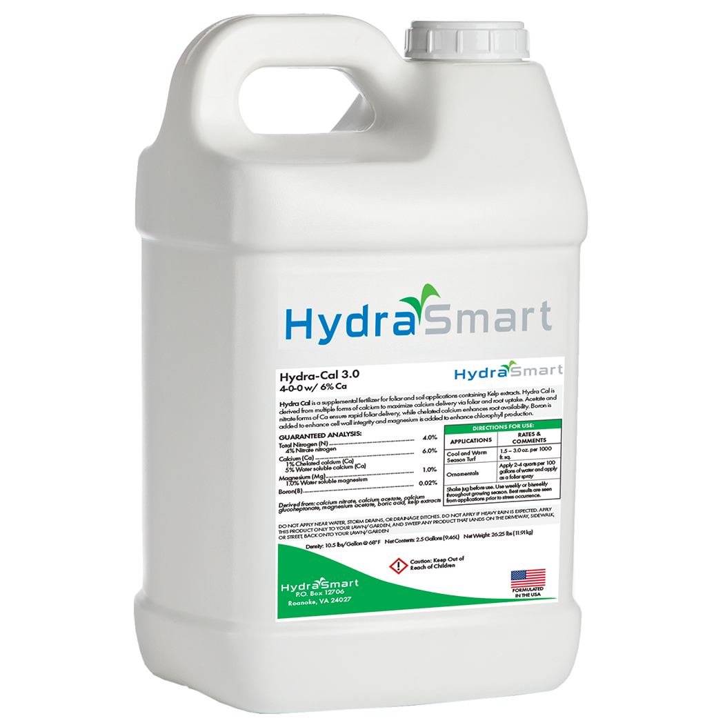 Hydra-Cal is an advanced calcium blend combining acetate, nitrate, and chelated forms for maximum efficiency and uptake through both foliage and roots. Infused with biostimulants from desert plant extracts, it promotes stronger roots and overall plant health, while added boron, magnesium, and plant-available silica enhance cell wall strength, chlorophyll production, and turf resilience under stress.